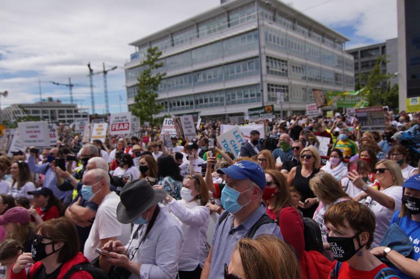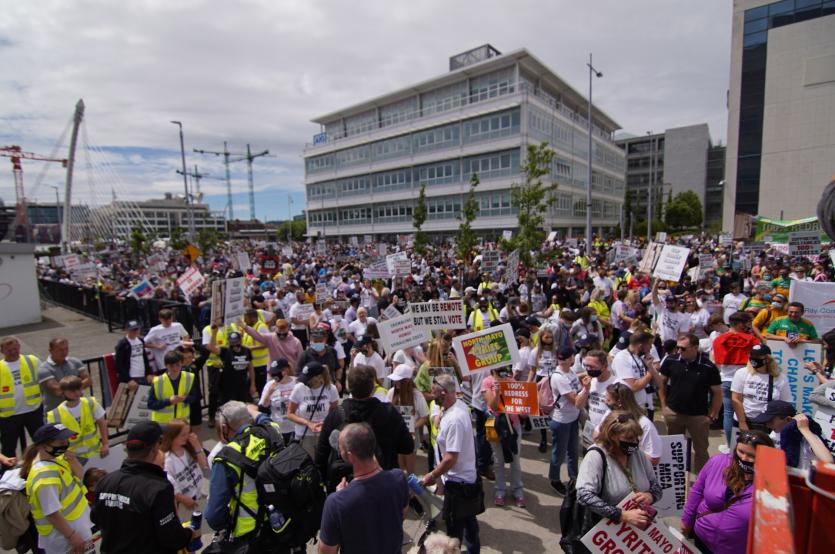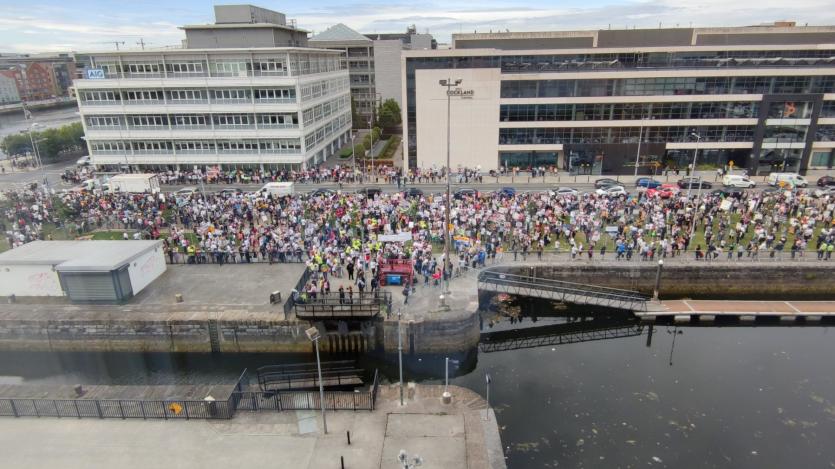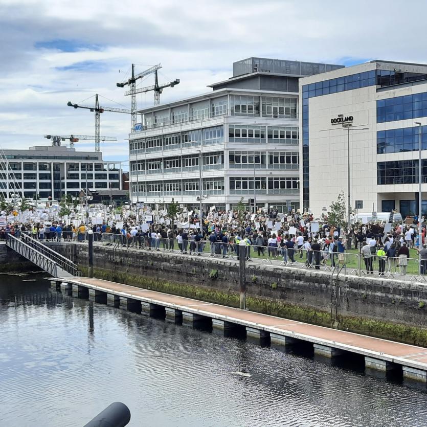 A convoy of coaches and cars left the forgotten-no-longer County at dawn yesterday and a crowd of more than 10,000 massed on Dáil Éireann, sitting in Dublin's Convention Centre, where Kerry TD, Michael Healy-Rea, said the Government would "ignore Donegal at it's peril".