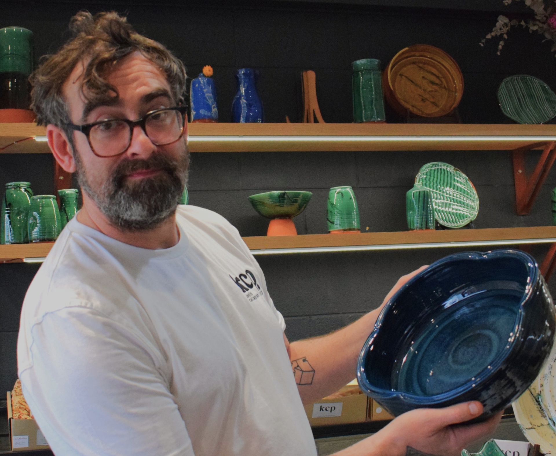 Kevin has help from two women, Ingrid and Georgina, who help with the pottery and in the shop.