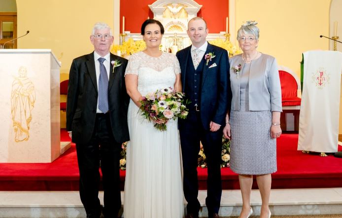 The bride and groom, Fiona and Mark, with Fiona's parents, Rita and Josie McDaid