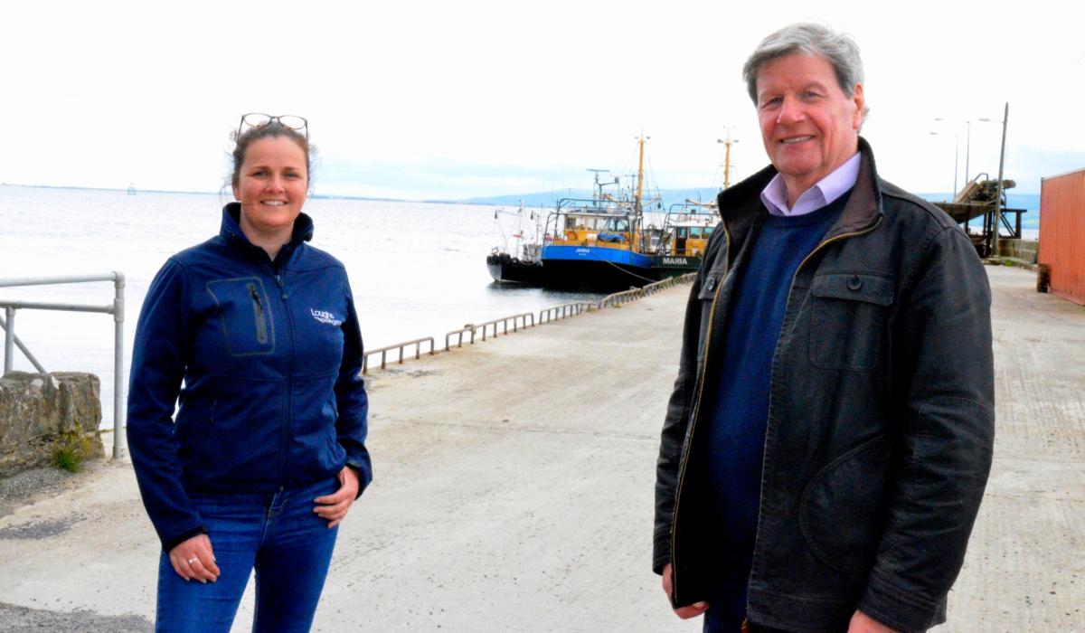 Dr Sarah McClean of the Loughs Agency and Joe Mahon at Carrickarory Pier, Moville