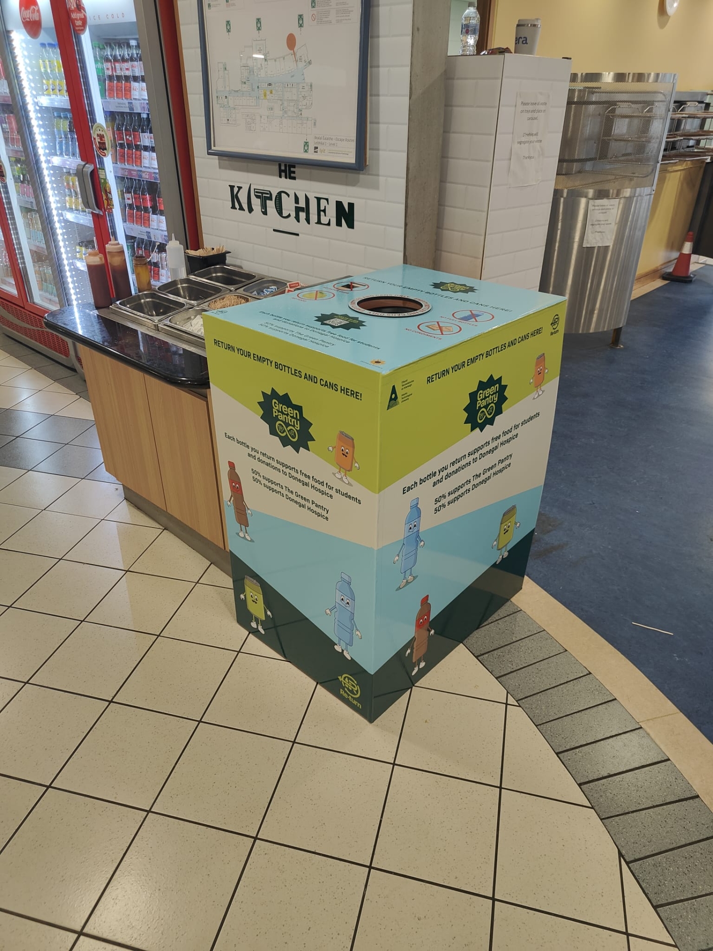 Alongside surplus food and product redistribution, the Green Pantry has implemented a campus‑wide re‑turn bottle and can recycling programme, with six collection stations installed across ATU Donegal campus.