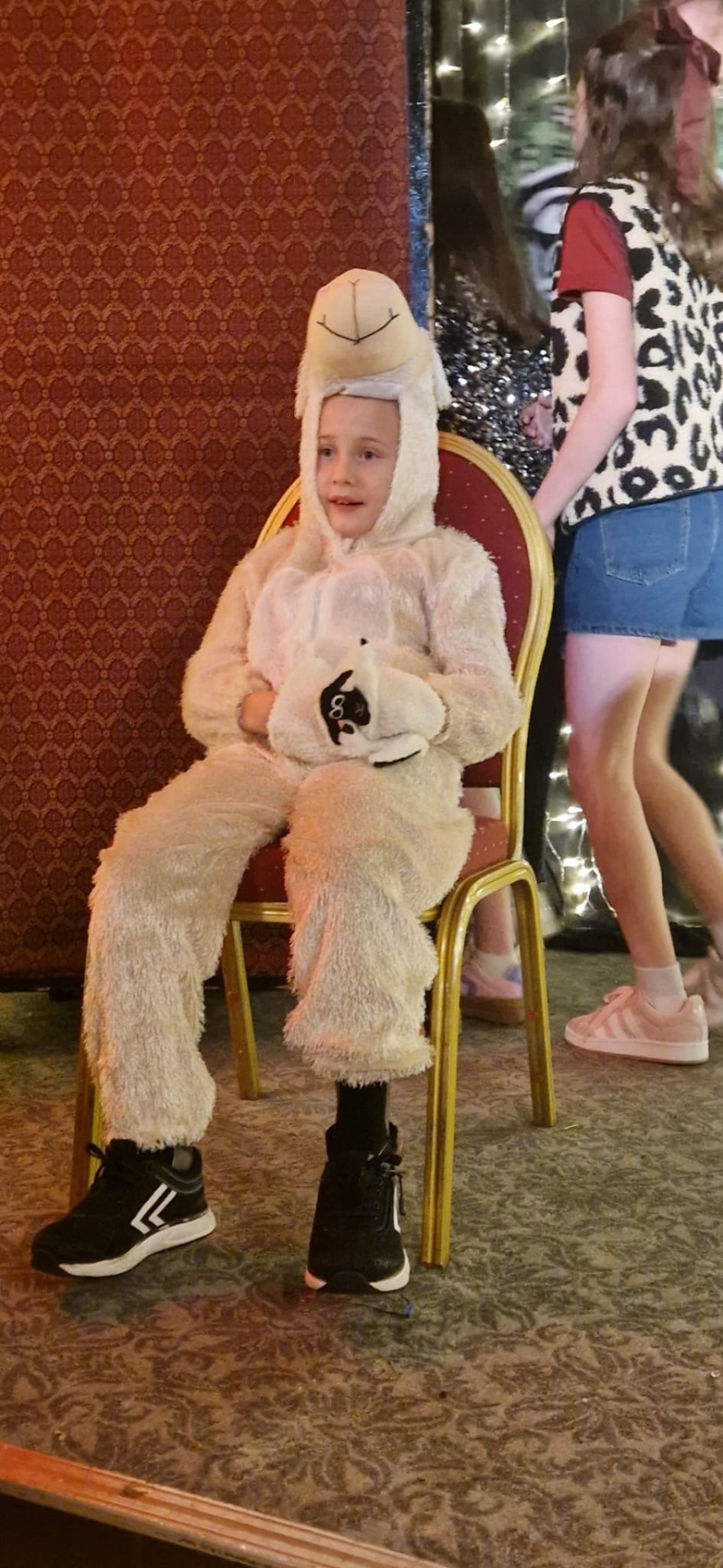 Jason dressed as a sheep at the Christmas play