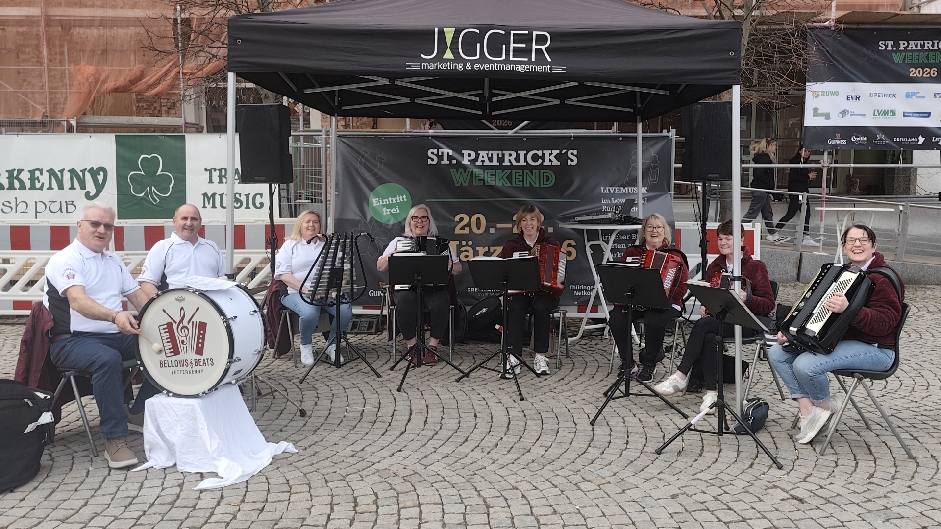 Bellows and Beats performing in the town square on the first day of the St Patrick's weekend festival in Rudolstadt