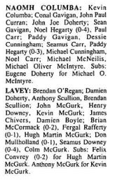 Teams and scorers when Naomh Columba played Lavey in 1990