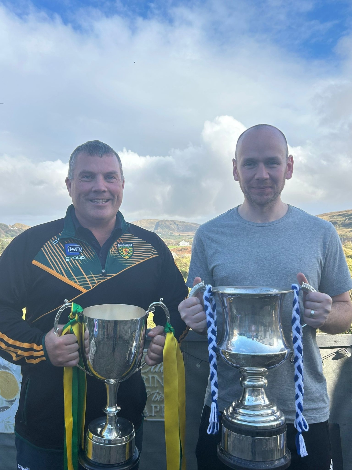 Brendan Doherty and John O'Malley with Cathal McLaughlin and Dr Maguire Cups