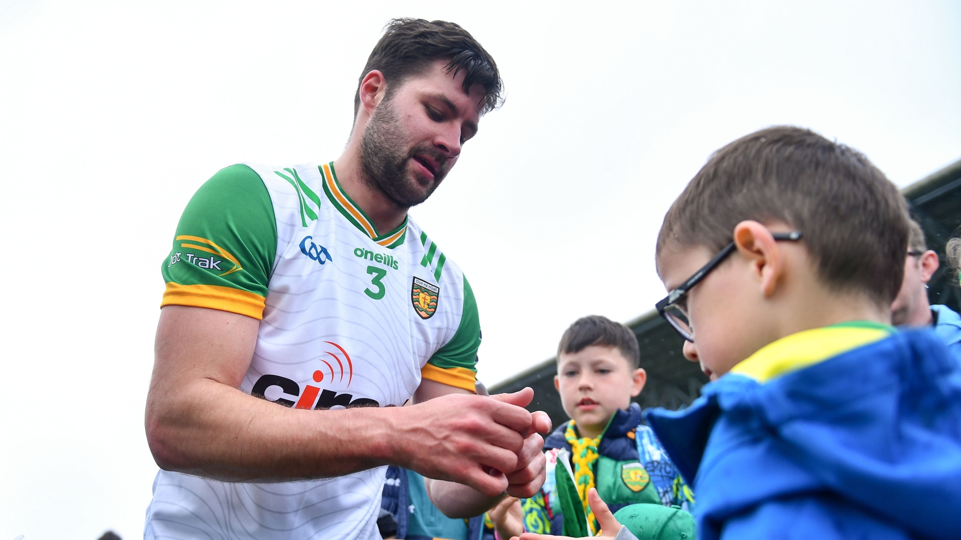 Brendan McCole signs autographs for young Donegal supporters