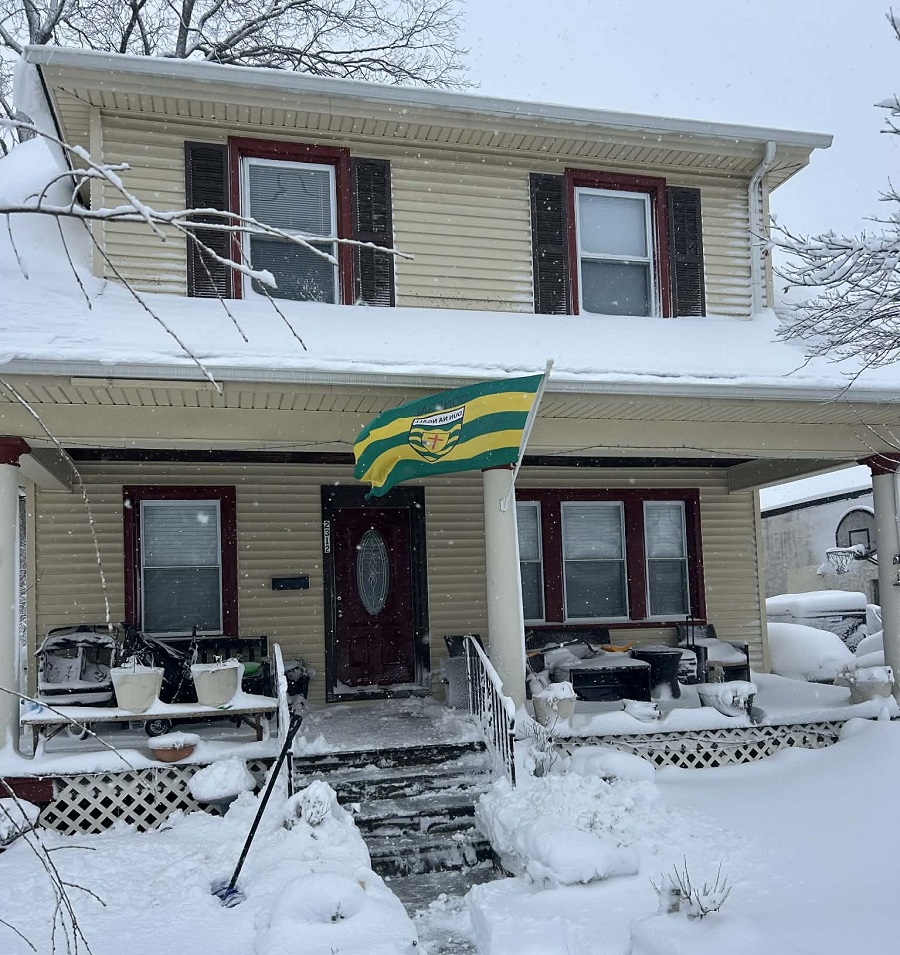 The Bourke household in Philadelphia this week with the snow outside and a Donegal flag flying high