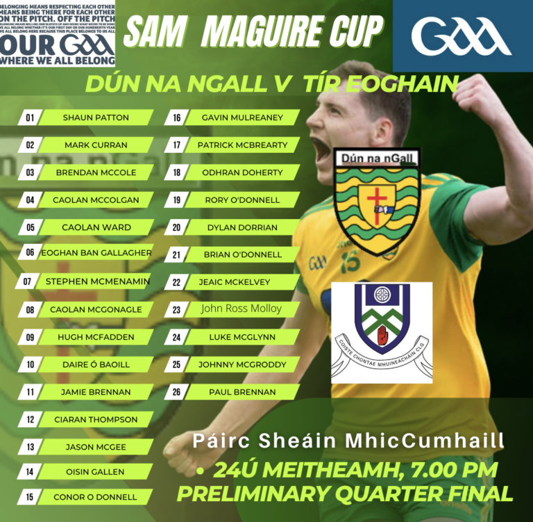 Aidan O'Rourke's side sealed second place in Group 4 of the round-robin stage with a fine 0-19 to 0-17 win over Monaghan at Healy Park last Saturday and the panel list released for their clash against Tyrone in Ballybofey sees the Cloughaneely midfielder come in for Odhran Doherty of Naomh Conaill. McGee missed out last week with a hamstring injury. Donegal opened with a 0-14 to 0-9 win in Ennis against Clare before losing 3-14 to 1-15 against Derry.