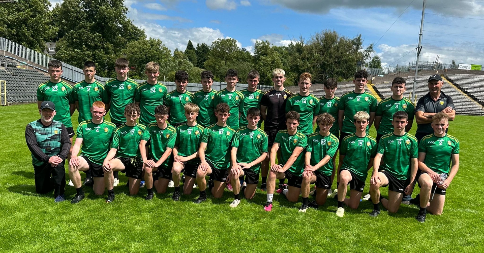 Garrett Brennan, Aodh Ruadh; Joseph Gibbions, Aodh Ruadh; Joe Gallagher, Ardara; Ronan McLaughlin, Carndonagh; Kalvin McLaughlin, Carndonagh; Jack Gallagher, Cloughaneely; Danny McCready, An Clochan Liath; Kyle Bonner, An Clochan Liath; Ryan Grannell, An Clochan Liath; Geithin Mosby, Four Masters; Conal Flannery, Four Masters; Ethan McCrea, Four Masters; Thomas Carr, Four Masters; Thomas Lenehan, Four Masters; Cathal Mac Aoidh , Gaoth Dobhair; Brian Mc Fadden , Gaoth Dobhair; Tadhg O Baoill, Gaoth Dobhair; John Paul Gallagher, Gaoth Dobhair; Matthew Enright, Glenswilly; Michael Gallagher, Kilcar; Cathal Doherty, Letterkenny Gaels; Callum McGilloway, Letterkenny Gaels; Jack Mailey, Milford; Shea Cannon, Milford; Odhran Bonner, Na Rossa; Jayden Cannon, Naomh Columba; Evan O’Donnell, Naomh Columba; Conor Farrell, Naomh Conaill; Shaun Gallagher, Naomh Muire; Corey Monaghan, Pettigo; Conor Gallagher, Red Hughs; Barry Lafferty, Robert Emmets; Tomas McNulty, Sean Mac Cumhaills; Odhran McBrearty, Sean Mac Cumhaills; Adam Byrne, Sean Mac Cumhaills; Jamie Gavigan, Sean Mac Cumhaills; Fionn Chernick, St Michael's; Evan Hickey, St. Eunans; Odhrán Ryan, St. Eunans; Evan Daly, St. Eunans; Rohan McMenamin, St. Eunans; Jack Bennett, St.Nauls; Fionn McGrenra, Termon; Sam Coyle, Urris; Joe Doherty, Urris; Patrick Doherty, Urris.