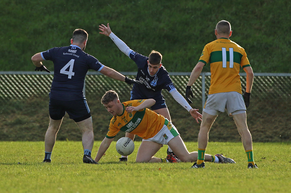 The Castlefin men got off to a dream start with a Jordan Tourish goal two minutes into the game. The cornerback, who was up in the attack, was in the right place to toe poke to the net when the ball broke in the St Mary’s goalmouth.