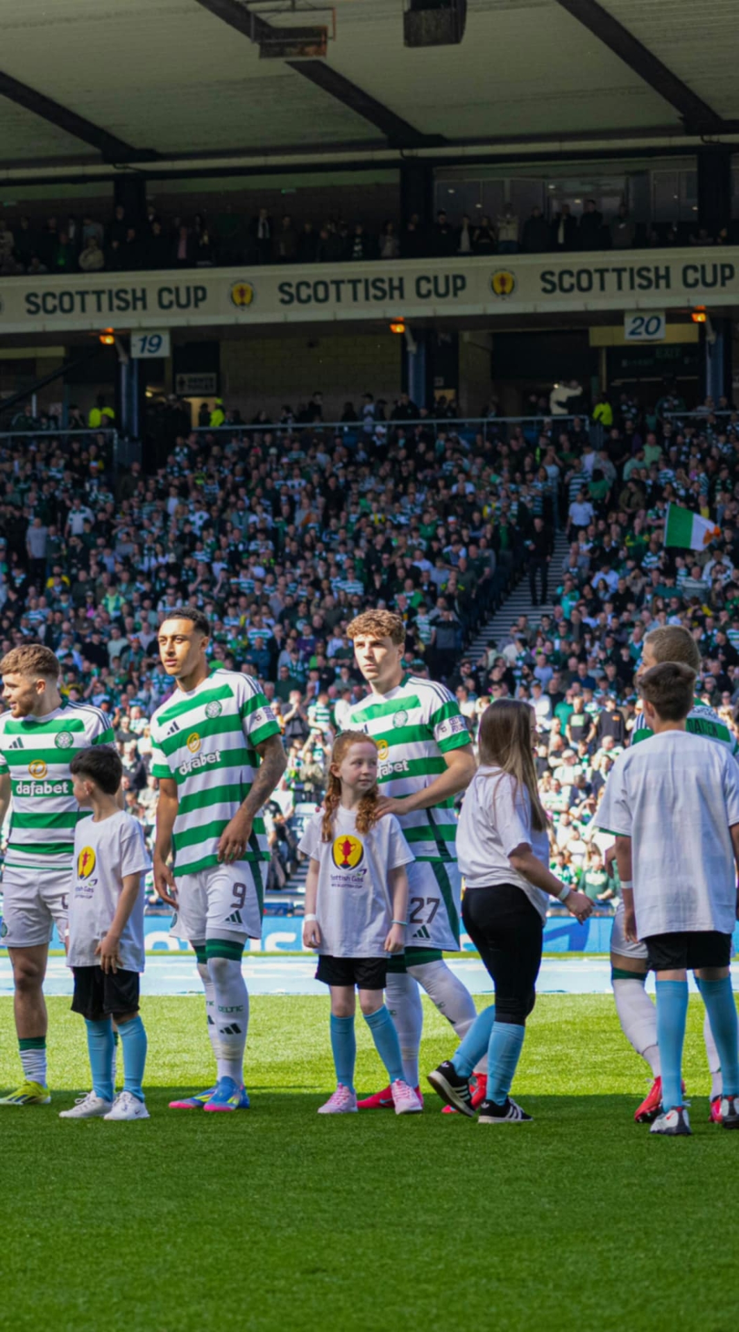 Robyn Cannon from Creeslough makes her way onto the pitch at Hampden Park with Celtic midfielder Arne Engels