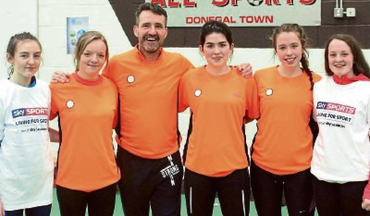 Abbey Vocational School students Anna Travers, Jodie Walker, Damaris Scott, Kate Smith and Layla Alvey who took part in a fun run with Jim Breen from Cycle Against Suicide recently