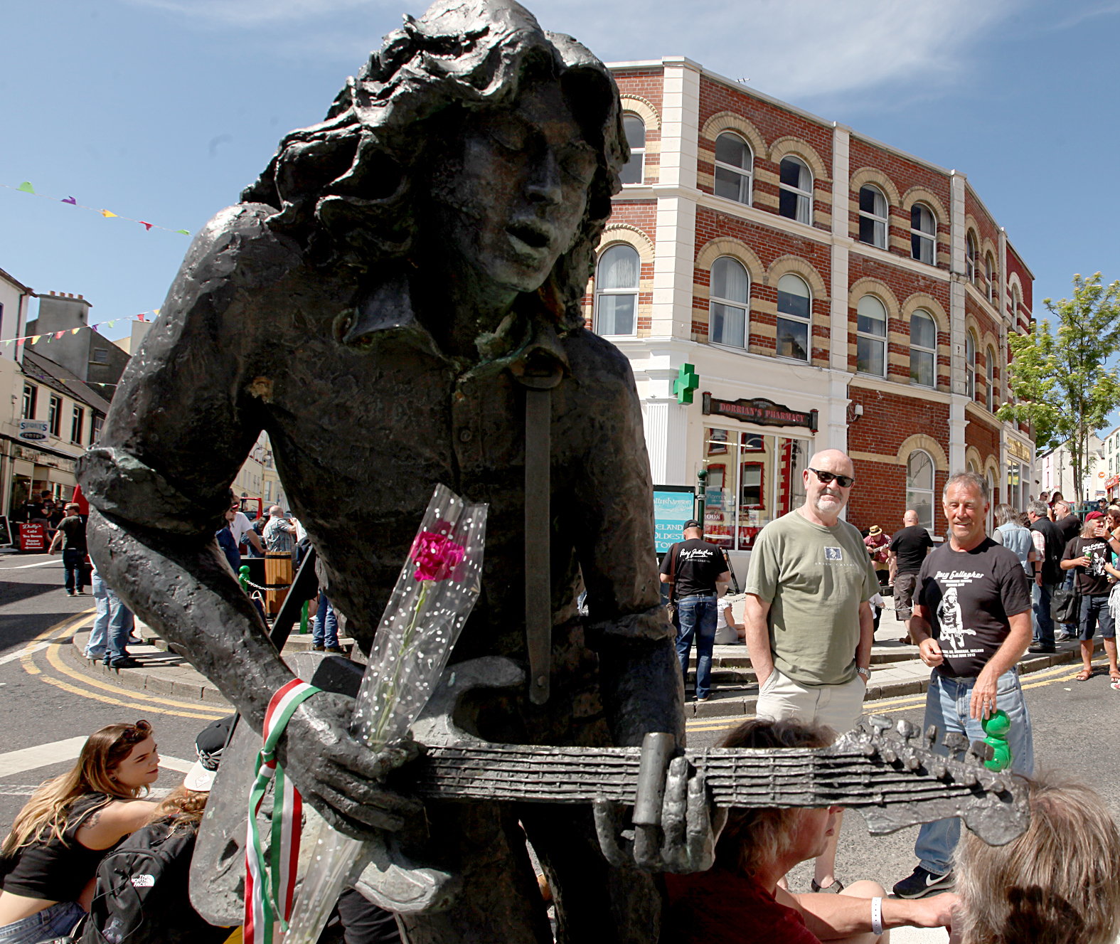 The famous Rory Gallagher statue at the Diamond in Ballyshannon.