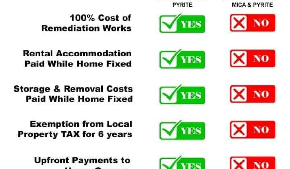 He added: “The Pyrite Scheme of 2013 on the East Coast, covering Kildare, Meath, Offaly, Fingal, Dublin City, Dun Laoghaire-Rathdown, South Dublin and just announced recently, Limerick, had no cost to pay for the repair of their homes or costs associated with renting while the work was complete.
