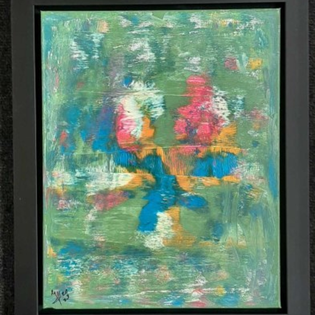 The spontaneous marks, vivid colours and texture suggest a flow of emotions, possibly anger, suffering and pain, as well as hope, courage, love and a calm serenity. The abstract art on show invites you to come on in, take a look, and find your own meaning.