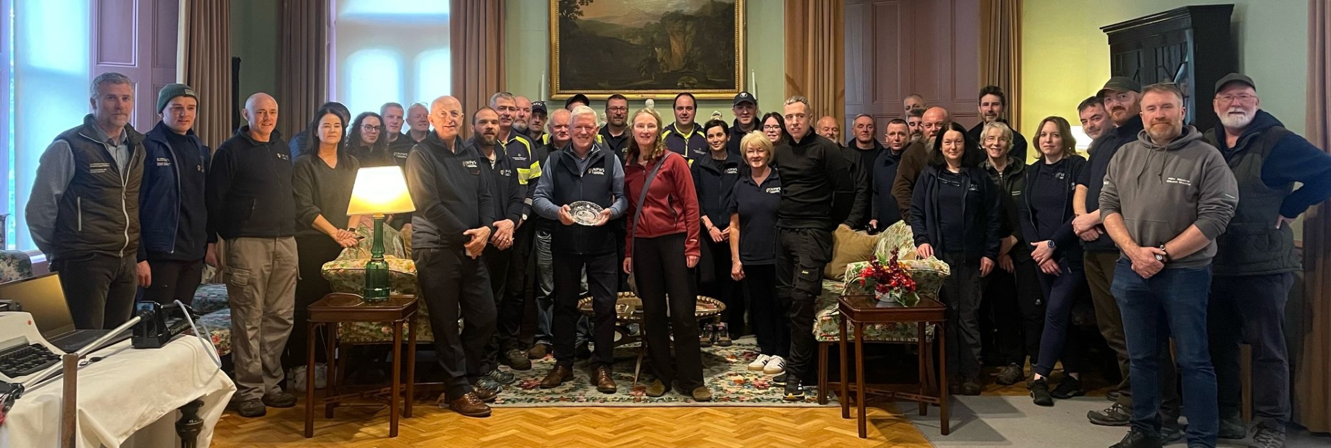 James McGinley received a presentation on behalf of the Glenveagh staff from Martin Toye, District Conservation Officer, Glenveagh