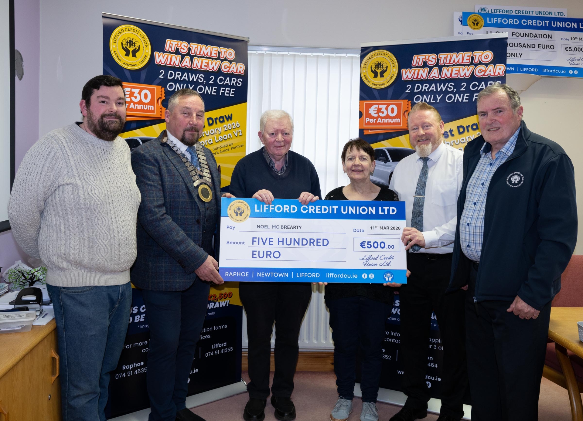 Noel and Mary McBrearty were the €500 winners and were also presented with their winnings.