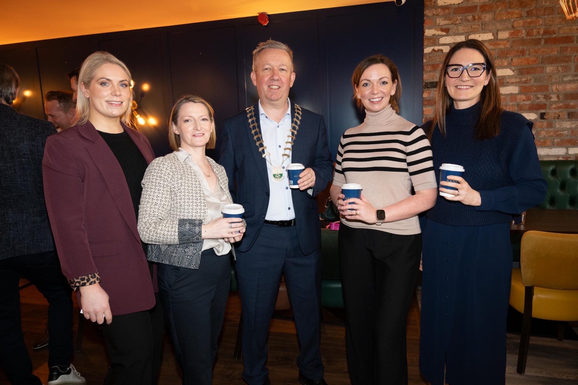 Kristin Reynolds (Reynolds Financial Services), Claire Mc Donough (La Maison), Jimmy Stafford, Chamber President (Bank of Ireland) Maria Rushe (Rushe Fitness) Andrea Devins (Andrew Devins Opticians) at the Letterkenny Chamber Presidents Breakfast in Kernans Bistro on Wednesday morning. Photo Clive Wasson