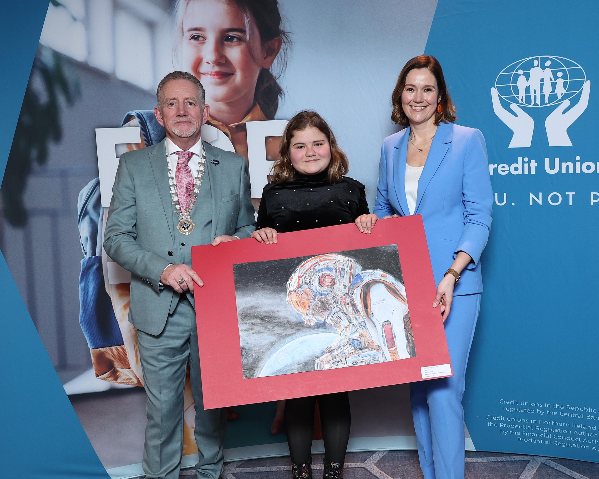 Vironika Shpyl, representing B&S Credit Union in Ballybofey, won first place in the Age 11–13 category, while Alannah Graham and Tristan Dowd from Abbey Vocational School, representing Donegal Town Credit Union, were named Group Winners. Both Donegal entries were selected from more than 25,000 artworks submitted by young artists from across Ireland, making the wins a significant achievement for the county.