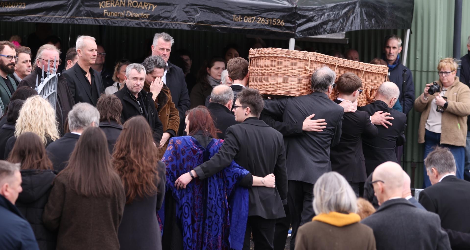 Shuttle busses brought people from both Ionad Naomh Padraig and teach Paidi Oig to the remote church, which was swelled to overflowing by the time the wicker casket was shouldered inside.