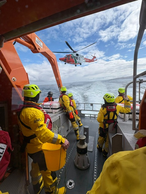 The crew received the first call to bring the doctor from NOWDOC to attend a patient on Arranmore and back to Burtonport and the second call came from the coastguard requesting a lifeboat to help locate a fishing vessel reportedly having no contact, which was later stood down when contact was made with the vessel
