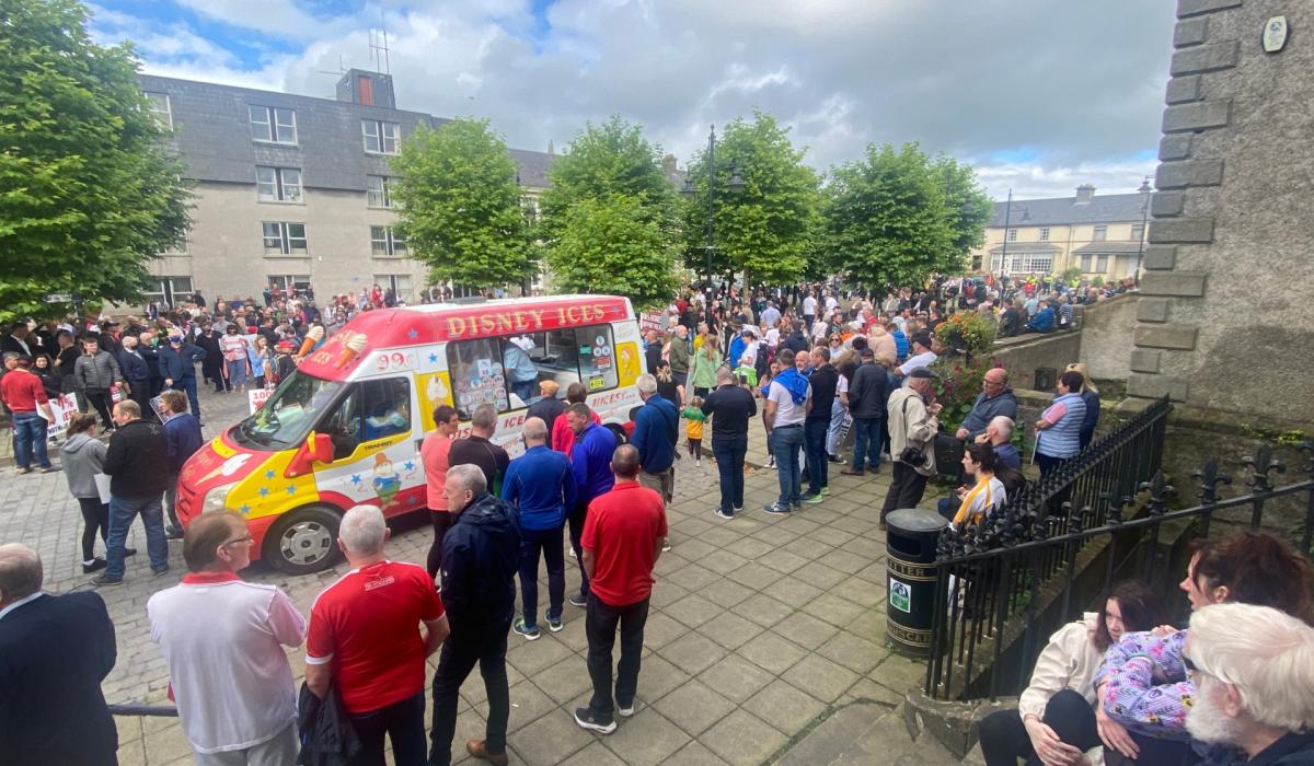 Large numbers gather for Lifford mica redress demonstration. PHOTO: Brian McDaid