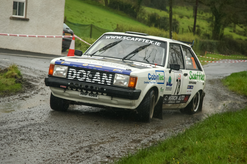 David celebrates with his father Michael, brother Darragh and the NMH Rally Team.