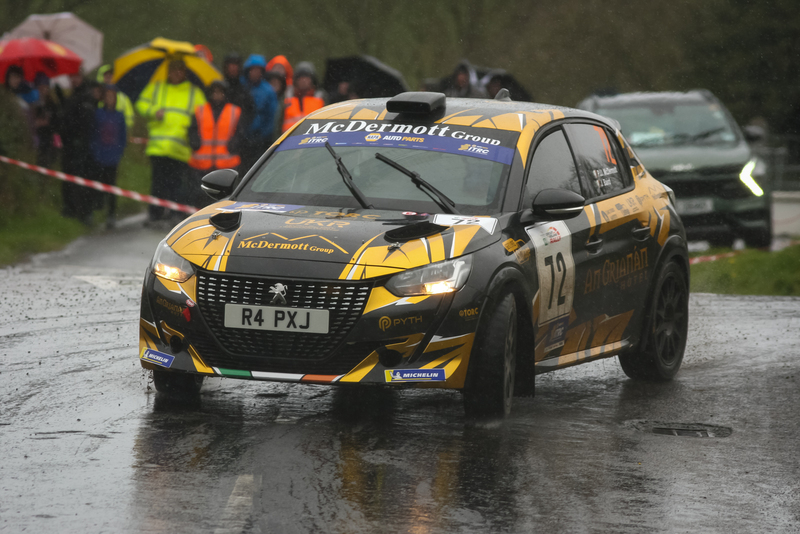 David celebrates with his father Michael, brother Darragh and the NMH Rally Team.