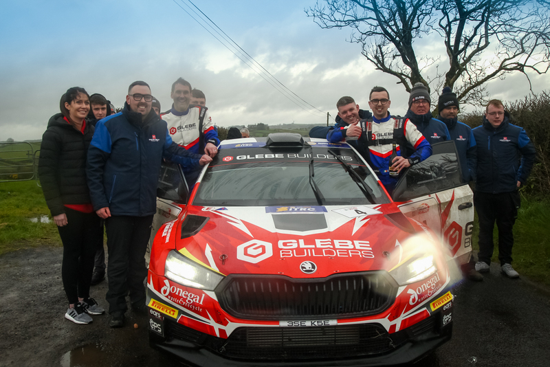 David celebrates with his father Michael, brother Darragh and the NMH Rally Team.
