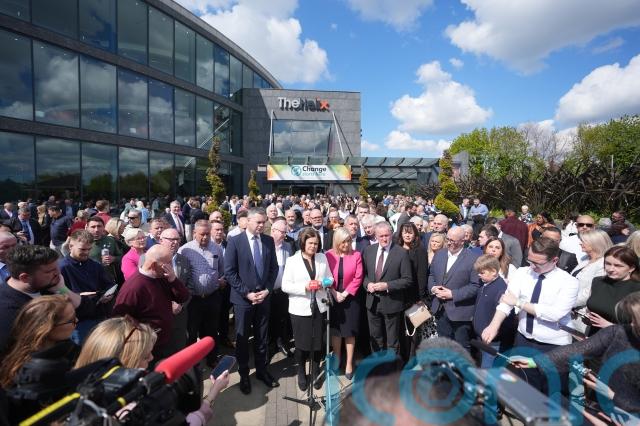 Stormont First Minister Michelle O’Neill was given a standing ovation as she addressed the delegation of local election and European candidates.