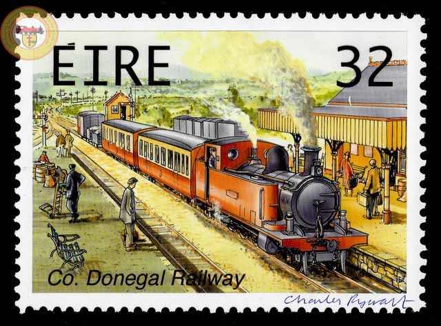 A wonderful piece of Donegal Railway history has recently been rediscovered, But rather than something directly from the forge or stations, it is a fascinating set of stamps commissioned by An Post in 1995.