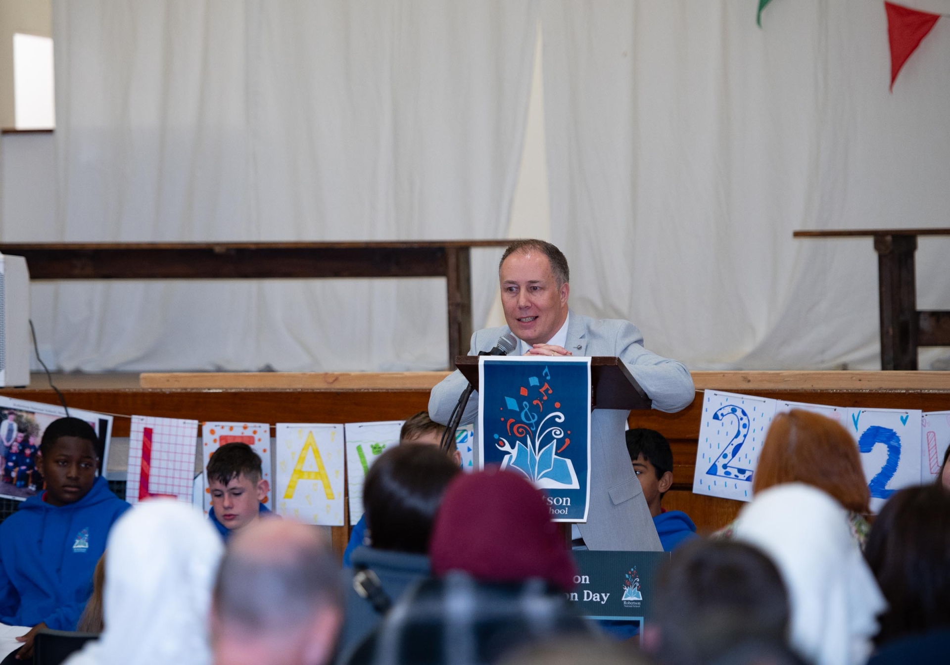 Mr. Brian Bovaird, Principal speaking at the Robertsons National School presentations and 6th Class graduation event.