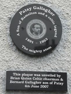 In 2007, eight members of the Lisbon Lions - the Celtic team that won the European Cup in 1967 - were present when a memorial plaque was unveiled at the childhood home of Gallacher in Ramelton by Celtic Chairman Brian Quinn and Patsy’s son Bernard Gallagher.