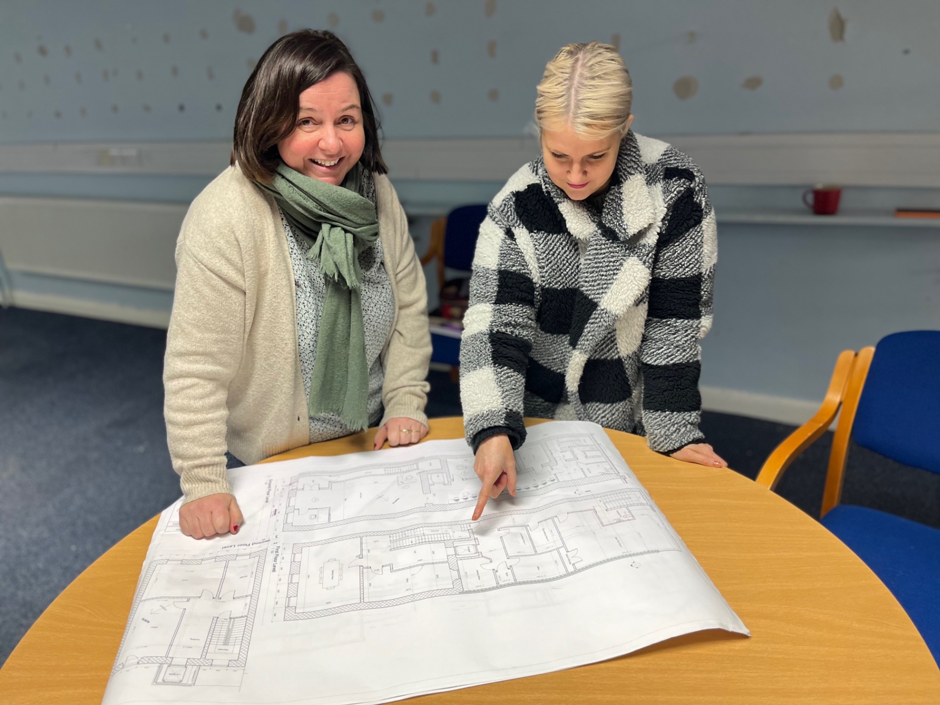 ABOVE: Danielle and Teresa casting their eyes on the new plans