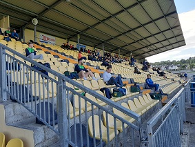 Supporters in the stand at O'Donnell Park on Friday night. Government guidelines mean that the number of people attending games is restricted