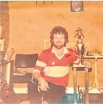 John Boyle pictured in a local pub's kitchen during the time when he was captain of Killybegs. Beside him is the Intermediate trophy in 1979 which was named after a Glen man Cathal McLaughlin