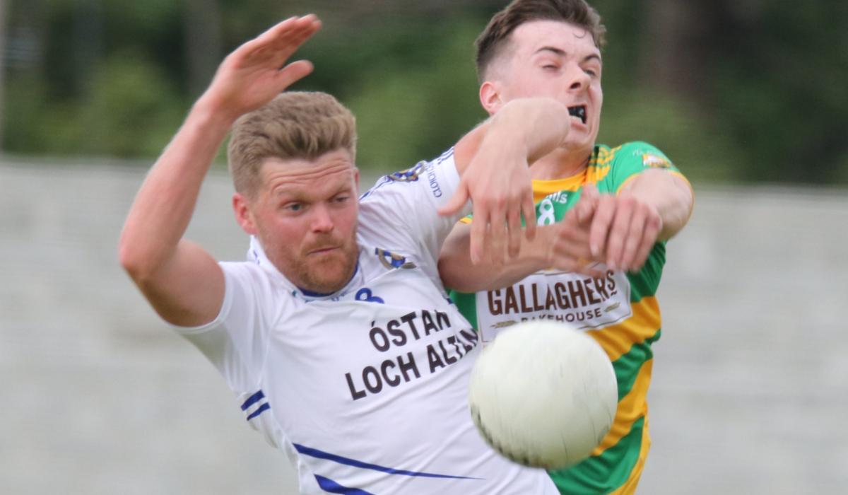 Martin Maguire of Cloughaneely and Ardara's Robbie Adair fight for possession in Falcarragh
