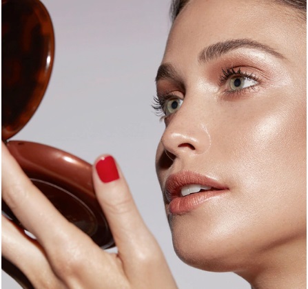 Skin is in with glowing complexions on a fresh face almost like a baby’s skin with a purplish primer blended around the eyes. At Lancôme its all about the strobe highlight glow and sculpt you can achieve all of above by mixing the custom highlight drop with your foundation or by wearing it on its own.