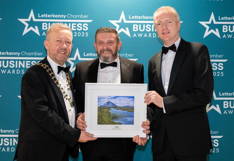 At the Letterkenny Chamber Business Awards in the Mount Errigal Hotel, Jimmy Stafford, Chamber President, Dermot Doherty, Restex Beds, Shop LK Business Award and Robert McElhinney, Dillions Hotel