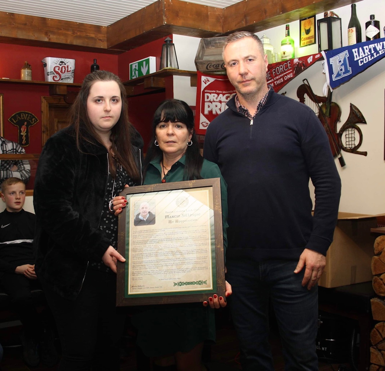 Tara and Antoinette Gillespie daughter and wife of the late Martin Gillespie along with chairman Michael Byrne