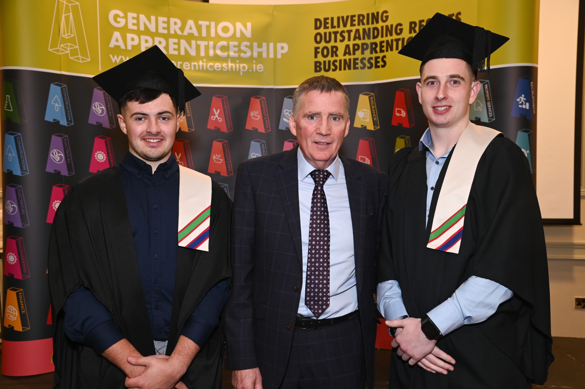 Graduates Aiden McGinley (left) and Cathal Charlton (right) with employer Eugene McBrearty, MD, KER Group, Killybegs.