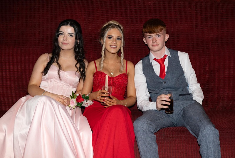 Sarah Coyle, Nicole Curran and Ryan McGrath relaxing at the Mulroy College Prom in the Silver Tassie on Wednesday last. Photo Clive Wasson