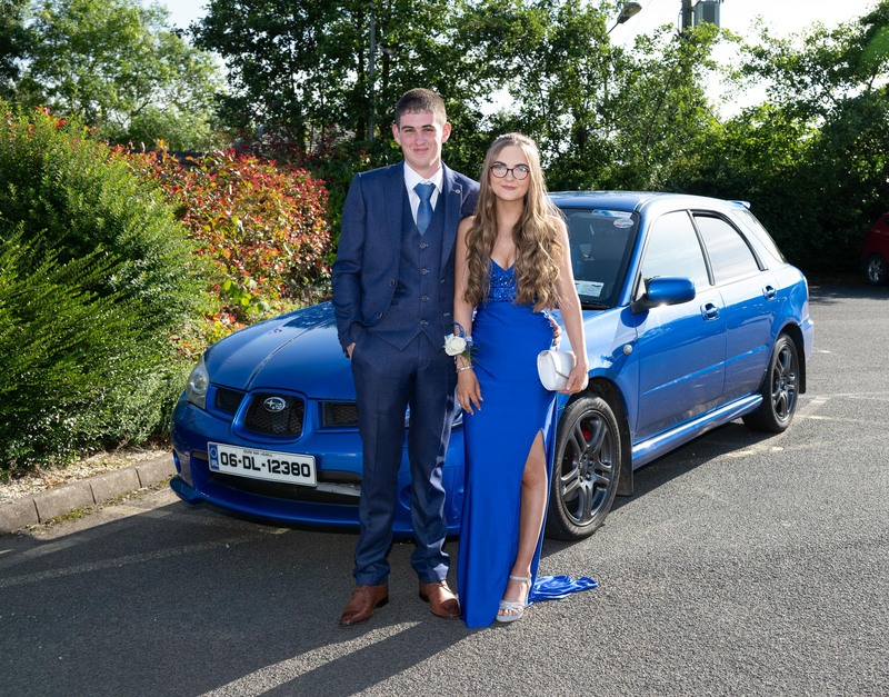 Jamie McDevitt and Rachel Mulrine arriving at the Mulroy College Prom in the Silver Tassie on Wednesday last. Photo Clive Wasson