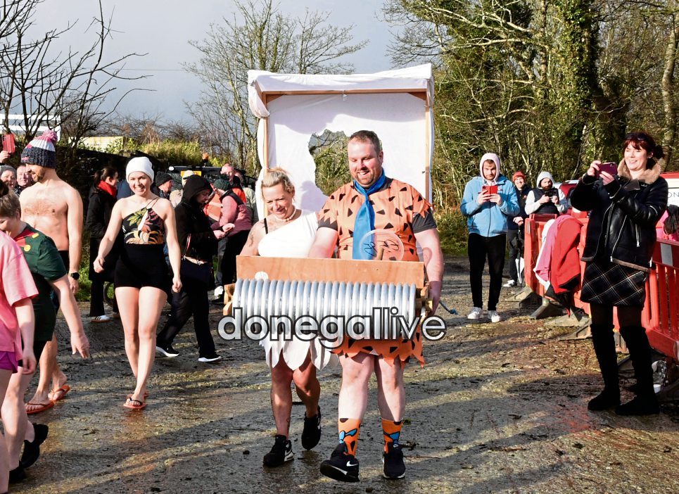 The annual New Year's Day Swim in Redcastle was held in memory of Redcastle Postmistress Elizabeth Hannon and in aid of Donegal Cancer Care West
