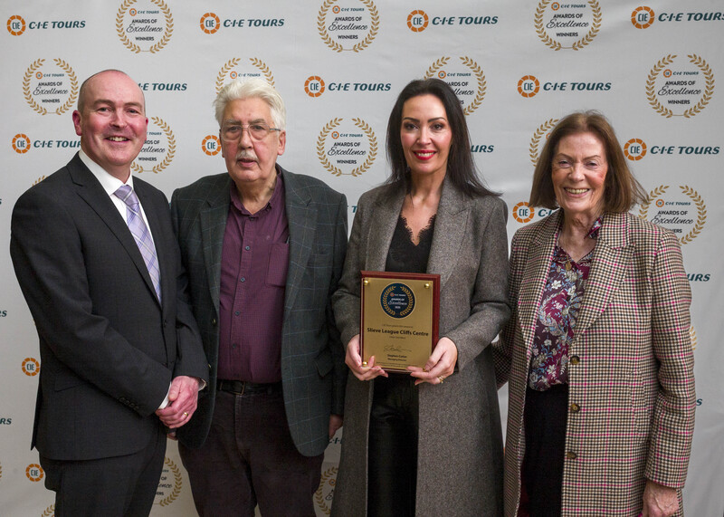 Pictured L-R: Stephen Cotter, Managing Director of CIE Tours with Dennis, Caitriona and Ann Mulhern, Slieve League Cliffs Centre