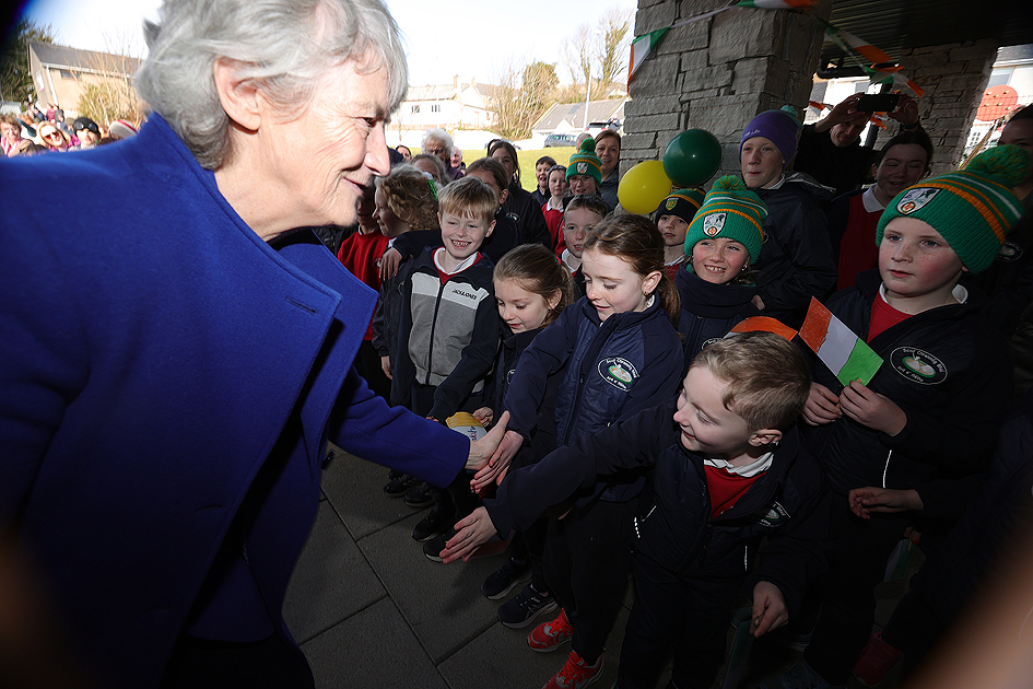 Uachtarán na hÉireann Catherine Connolly, received a warm welcome from locals and public representatives at Ardara Community Childcare.